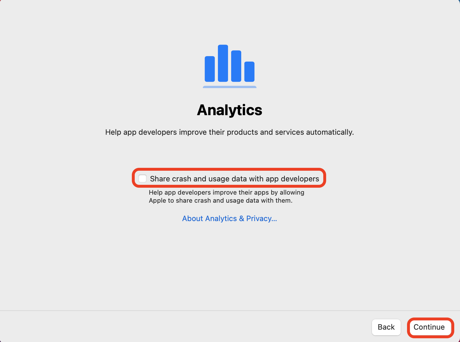 Step 5: Leave the Analytics check box empty and click 'Continue'.