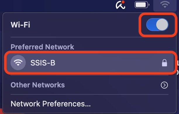 Step 13: Make sure Wi-Fi is switched on and select the Wi-Fi for you building, eg. SSIS-A or SSIS-B.