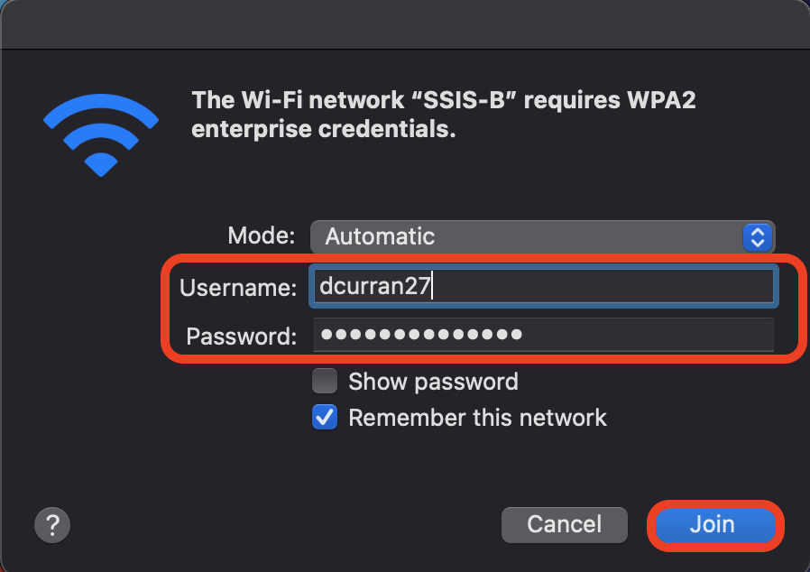 Step 14: Type in your SSIS (GMail) username and password, then click 'Join'.