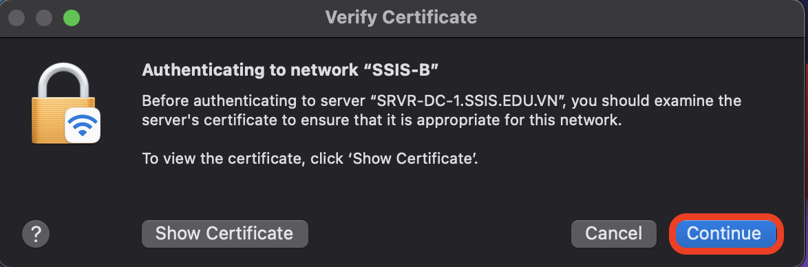 Step 15: On the 'Verify Certificate' screen, click 'Continue'.