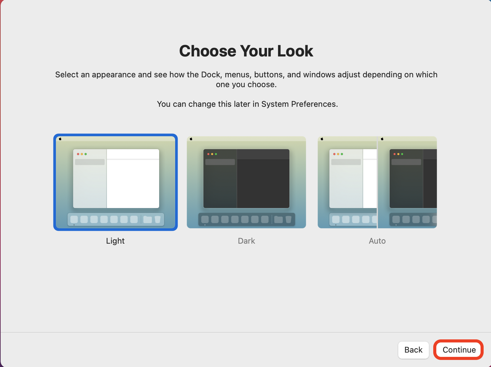 Step 11: Choose your look (Light works best) then click 'Continue'.