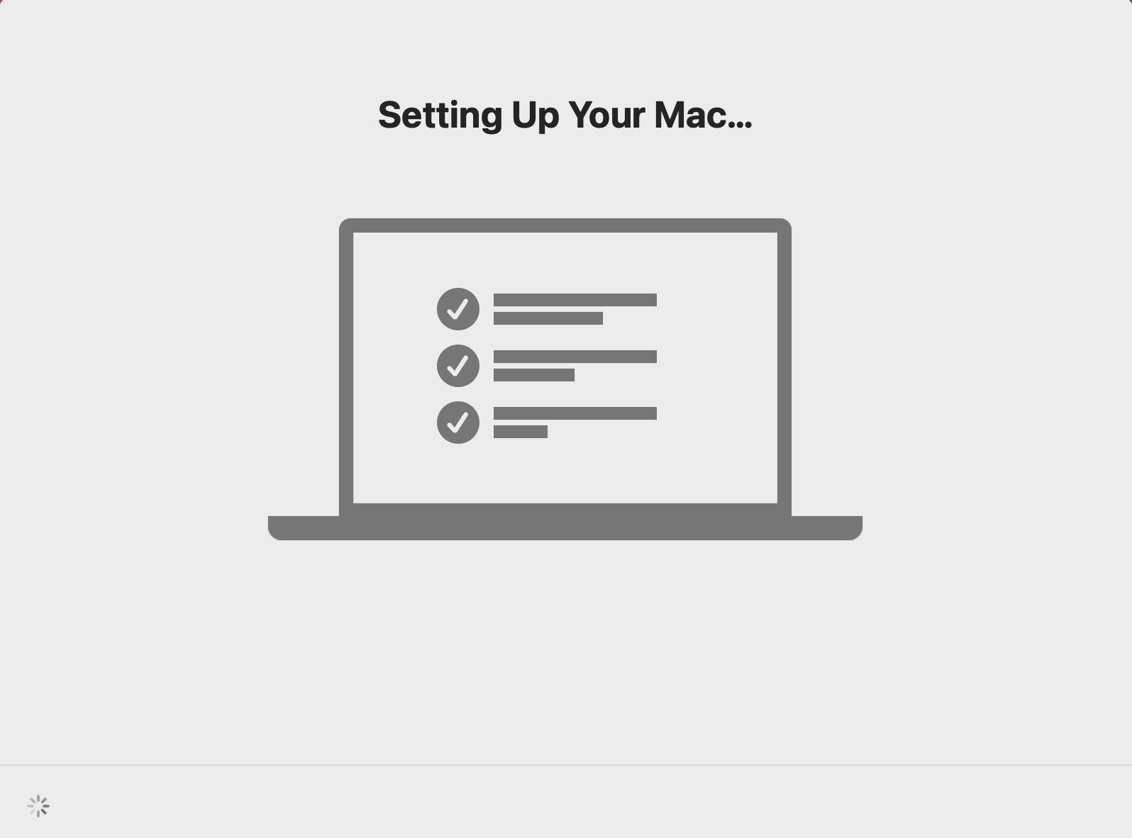 Your screen will either look something like this for a few seconds while it sets up your Mac, or it will go straight to the desktop.