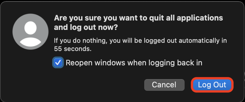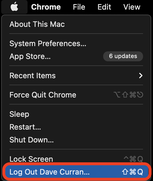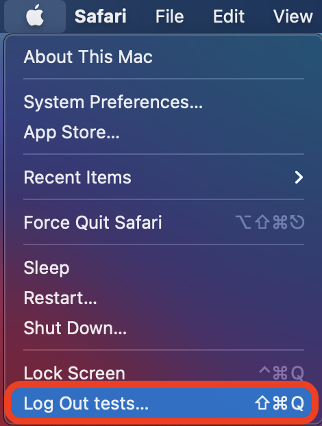Step 21: Once you have closed the ERB Secure Browser, you may now log out of your 'tests' user account (Apple menu