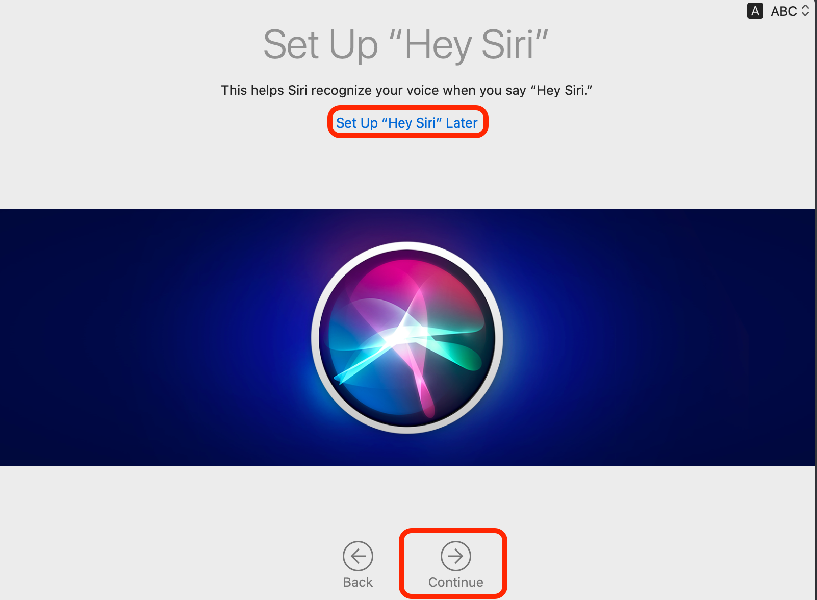 If you see a 'Set Up Hey Siri' screen like the one below, choose 'Set Up "Hey Siri" Later', then click continue.