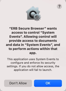 - CLICK 'OK' TO ALLOW THE ERB SECURE BROWSER TO CONTROL SYSTEM EVENTS: