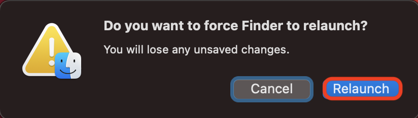 - 'Relaunch' Finder twice.