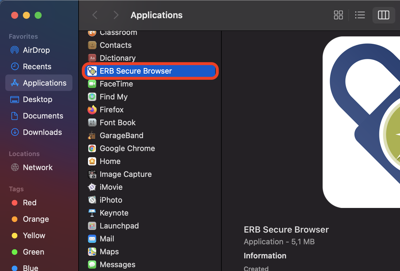 Step 5: Open the 'ERB Secure Browser' from within your Applications folder.