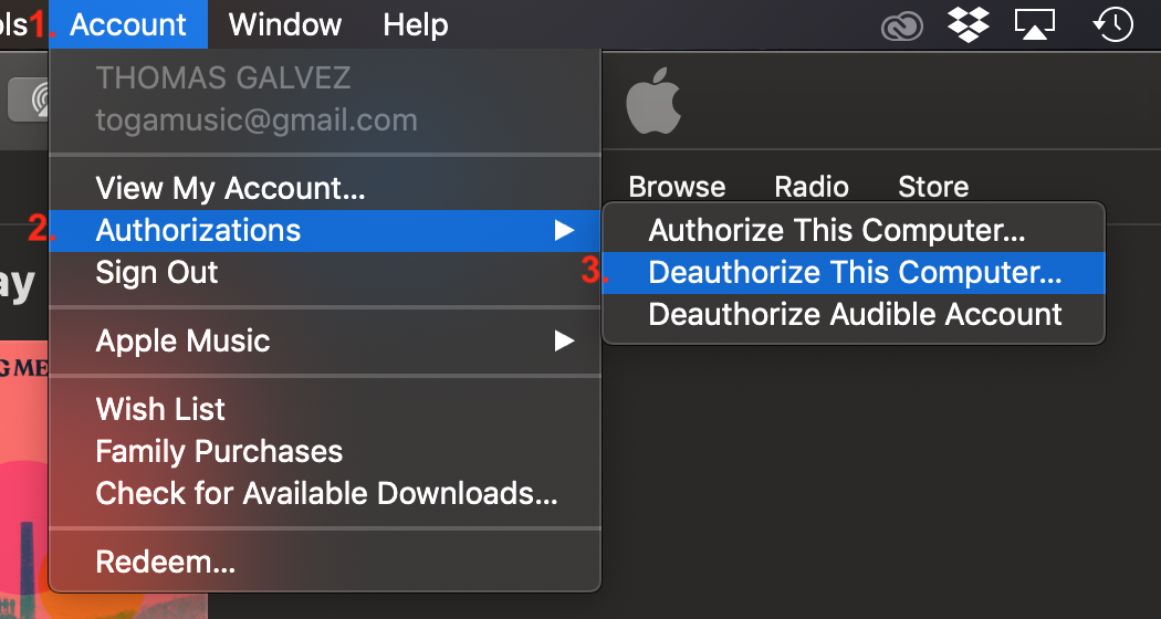 3. Click "Deauthorize" this computer.