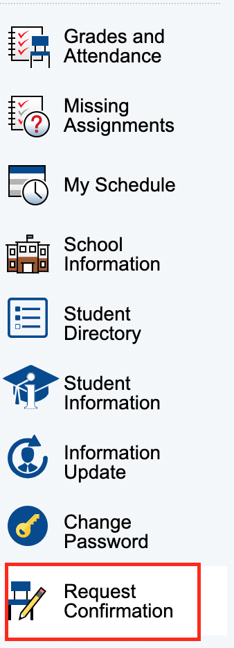- Click on the icon Request Confirmation on the left-hand side menu.