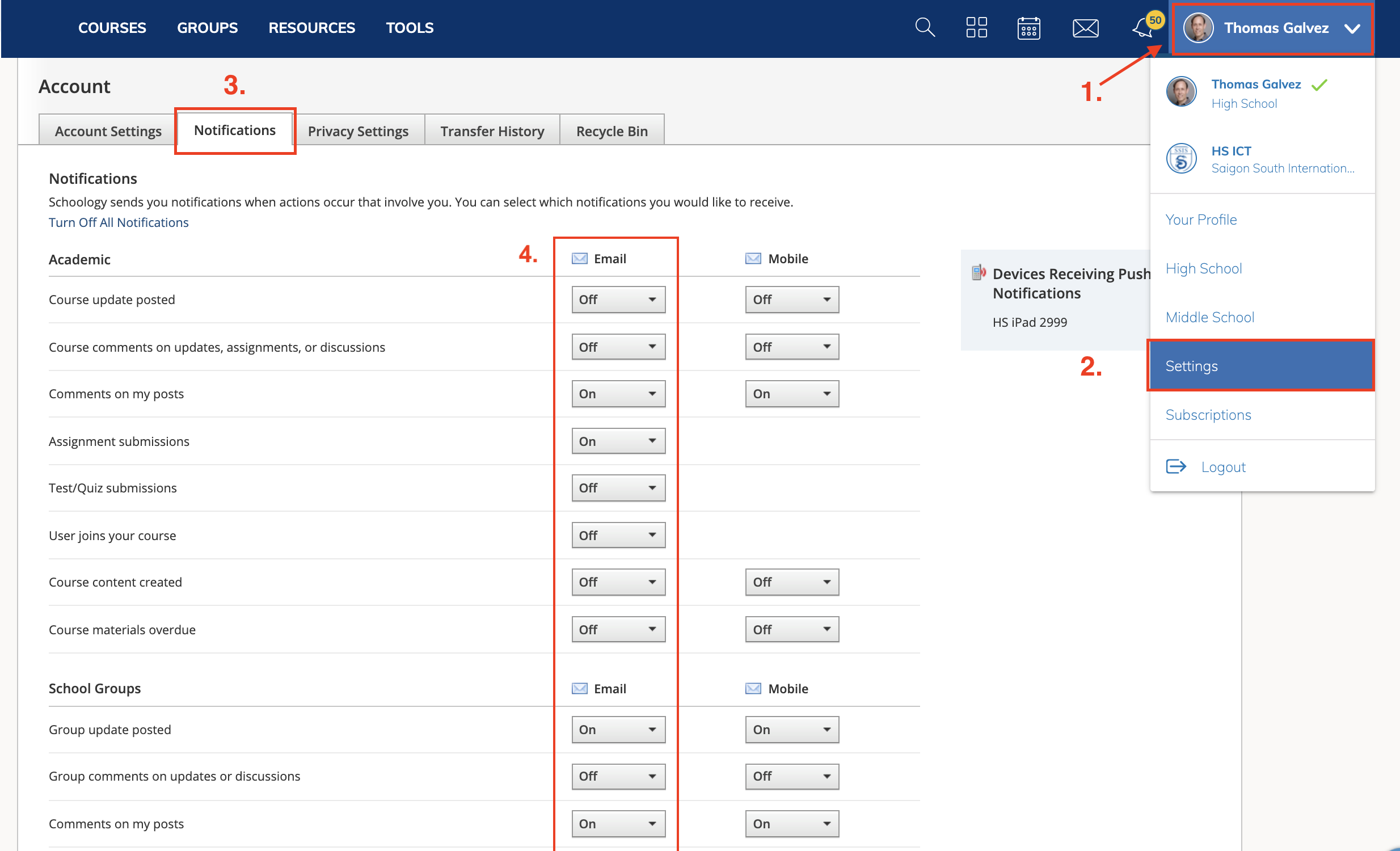 4. Configure the options you want or don't want to receive by choosing On or Off.
