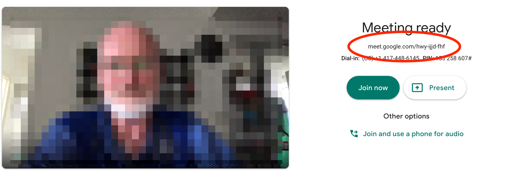 Copy the address of the Meet and use it as a hyperlink in an email or on PSL.