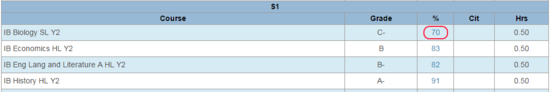 For high school courses with exams S2 = (C2 x 80% + E2 X 20%)