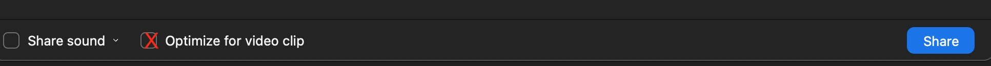 When sharing your screen and not showing a video longer than 2 minutes, make sure NOT to check the Optimize for video clip