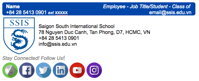- SSIS social connections (Website, Facebook, Twitter, LinkedIn, Youtube and Instagram)