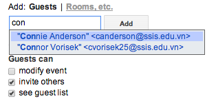 In the Add: Guests section on the right side of the page, enter the first few letters of a guest's full name to look up the address in your corporate directory.