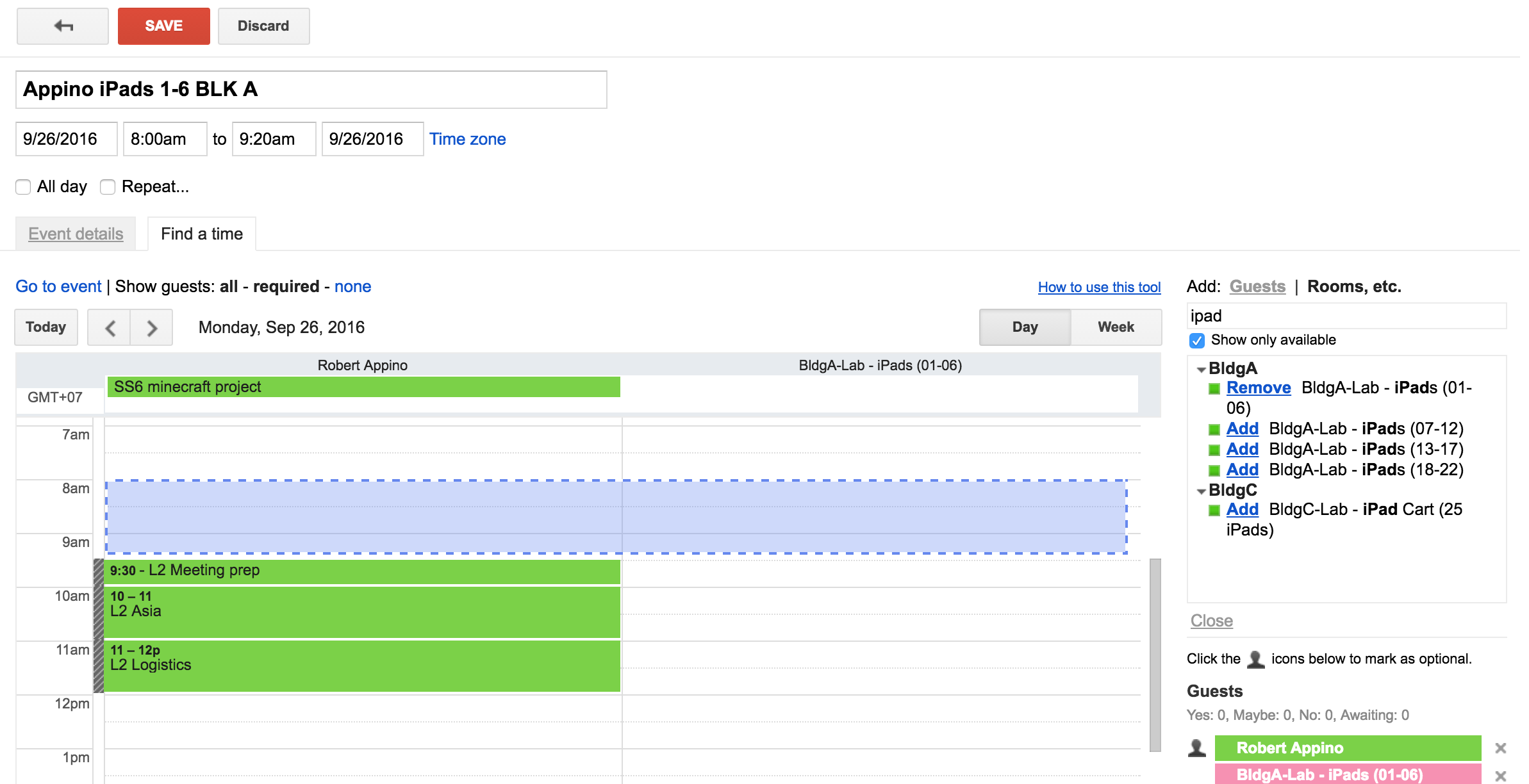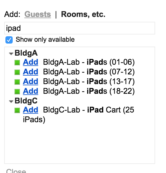 Select the BldgA > BldgA-Lab > Subscribe to the iPad Calendars (there are four total)